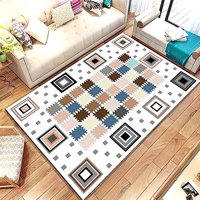 Kare Desenli Dijital Baskılı Halı