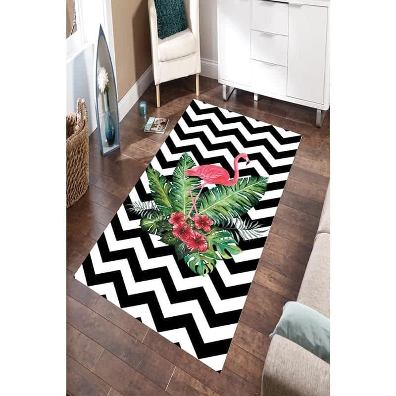 Flamingo Çiçek Desenli Dijital Baskılı Halı
