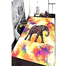 Renkli Çiçekli Fil Desenli Dijital Baskılı Halı