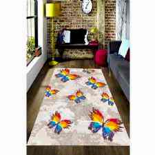 Çizgili Kelebek Desenli Dijital Baskılı Halı