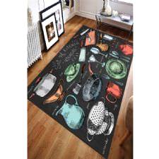Mutfak Malzemeleri Çizimi Dijital Baskılı Halı