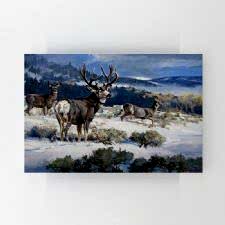 Karlı Orman İçinde Geyikler Yağlı Boya Tablosu