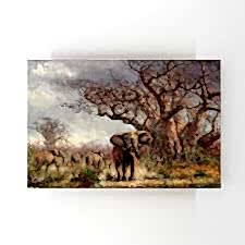 Ormanda Gezen Fil Sürüsü Yağlı Boya Tablosu