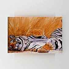 Kuru Otlar Arasında Yatan Kaplan Yağlı Boya Tablosu