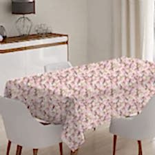 Pembe Çiçek ve Kuşlu Model Masa Örtüsü