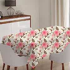 Pembe Çiçekli Krem Zemin Model Masa Örtüsü