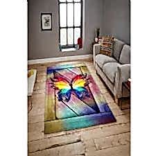 Renkli Kutu Zemin Ve Modern Kelebek Dijital Baskılı Halı