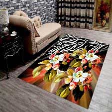 Çiçekli Zebra Desenli Dijital Baskılı Halı