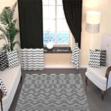 Siyah Beyaz Zikzak Desenli Dijital Baskılı Halı