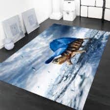 Mavi Kaplumbağa Desenli Dijital Baskılı Halı