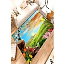 3D Manzara Ve Çiçekler Dijital Baskılı Halı