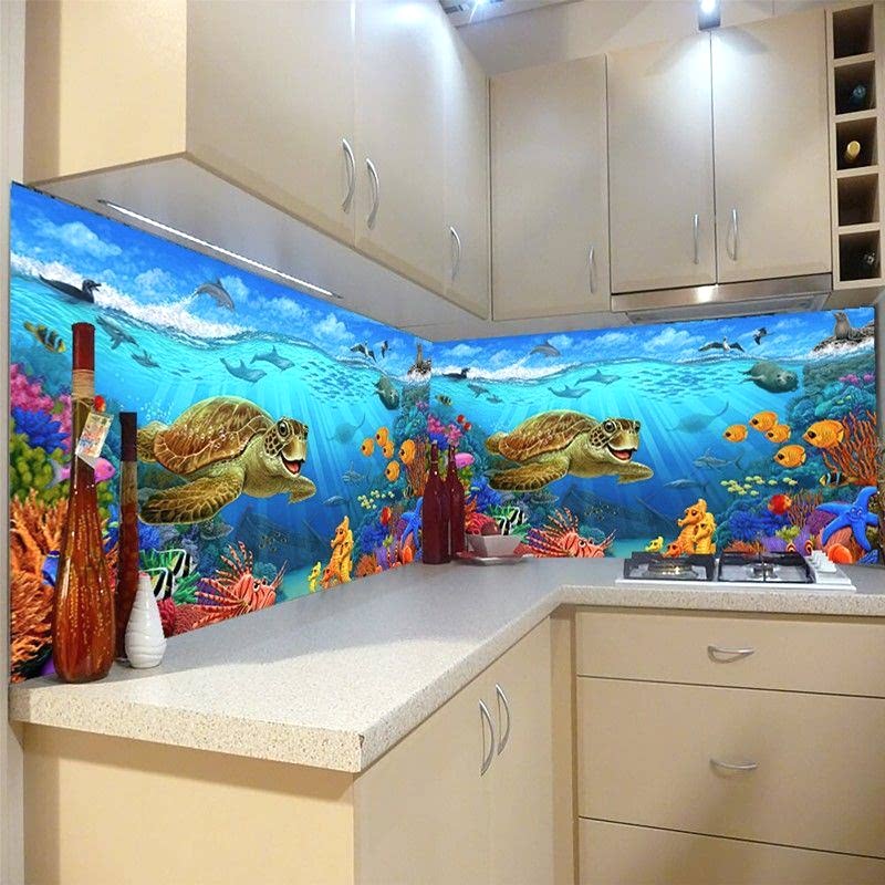 Deniz Canlıları Akvaryum Temalı Tezgah Arası Cam Panel