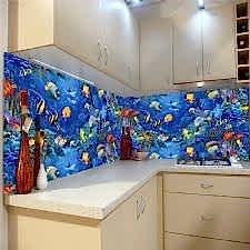 Akvarumda Balıklar Temalı Tezgah Arası Cam Panel