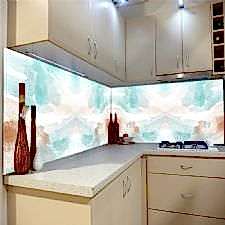 Sulu Boya Görünümlü Tezgah Arası Cam Panel