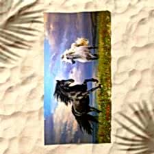 Black and White Atlar Dijital Baskılı Plaj Havlusu