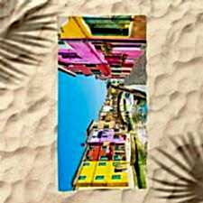 Renkli Binalar Dijital Baskılı Plaj Havlusu
